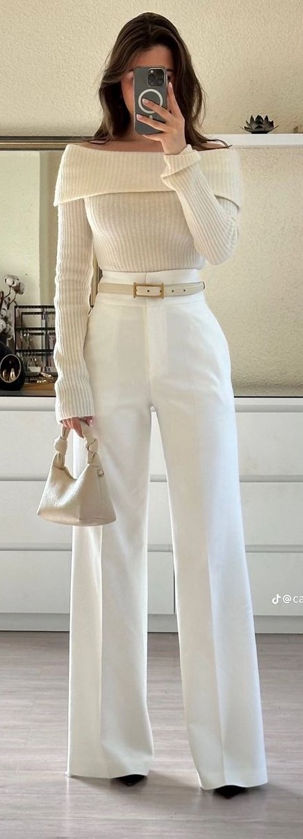 Ne giyeceğimi karar vermek için dolabıma doğru gitmeye karar verdim. Dolap önümde belirdiğinde dolap kapaklarının ağzını iki yana açtım, ve kıyafetlerime baktığım ne giysem diye bakındım. Gözlerime krem tonlarında bir kazak ile beyaz bol paça pantolon kestirdim ve ikisini çıkartıp kombinlemeye başladım.