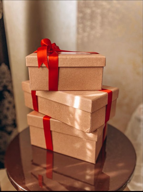 Beste elinde bir hediye paketi ile geldi