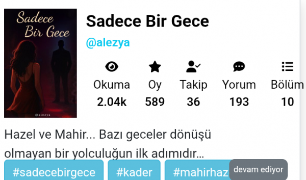 Konusu: Ayrılığın bıraktığı izlerle içine kapanan Hazel, arkadaşlarının ısrarlarıyla sadece bir gece diyerek dışarı çıkar ve kendini bir gece kulübünde bulur. Kalabalığın içinde, buz mavisi gözlere sahip bir adam dikkatini çeker. Bu yabancı ( yani Mahir) karşı koyamadığı bir çekim yaratır Hazel'de. Kontrolü bırakır ve tutkuyla geçen bir geceye teslim olur. Ama bilmediği bir şey vardır. Bu gece onun için sadece bir kaçış değil hayatının tamamen değişeceği andır.
