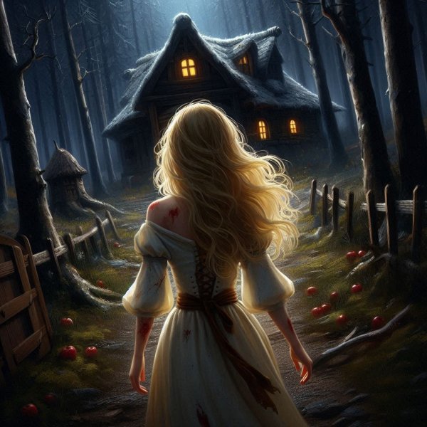 Melodi bir sağa bir sola doğru kayıp durmuştu. Görüşü bulanıklaştı, midesi kalkıp durdu ve başına giren sancıyla ormanda yürüdü yürüdü. 7 çirkin cücenin evine yaklaşıyordu. Anlamıyordu ama görüşüne giren korkutucu yapıya sahip olan bir küçük kulübeyi görmüştü. Bitkin ve ağrılı haliyle ilk başta bu yalnızca bir gölge gibi görünüyordu. Fakat gölge daha belirgin hâle geldiğinde, ufukta korkutucu bir yapı belirdi—küçük, eğri ve tehditkâr bir kulübe. Kulübenin duvarları karanlığın içinde kaybolmuş gibiydi; pencere kenarları çürümüş bir ağaç kabuğu gibi çatlak çatlak, kapısı ise hafif aralık ve davetkâr bir parıltıyla ışıldıyordu. Ama bu ışık sıcak değil, aksine bir tuzağın içine çekiyormuş hissi veriyordu.