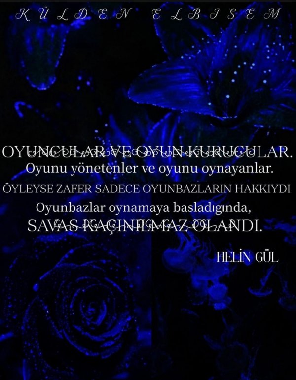 Bazı şeyler ders çıkarınca güzeldi ilkesi bu intikam ve öfke ateşinden doğmuştu. Amaçları hayat ve yaşam ormanlarını kül edip, tersliği düzlüğe çıkarmaktı. Bazı dersler sadece güzeldi. Aralarındaki fark, aklını kullananlara değil, aklını oynatanlara hitap etmekteydi. Oyun kurucular ve de oyuncular karşı karşıya geldiğinde savaş kaçınılmaz olacaktı. Her savaş her şey demek gibiydi. Bazı şeylerden ders çıkarmak güzel ise her şey demek, dersin kendisi demekti. Olmuş yahut olabilecek olan her şeyden ders çıkarmamak mümkün değildi. Çıkarmış olunan ders, sahibini olduğu yere sertçe düşürebilirdi. Pekala mümkün olanlardan biri de bundan ibaretti. Düştükçe kalkmasını bilmeliydi insan. En iyi olduğum konu düşünce kalkmak değil, düştüğüm çukura benimle beraber birini daha kolundan tutup çekmektir diyebilmeliydi. Onun üstüne basıp, onu oraya gömüp ayağı kalkmalıydı.
