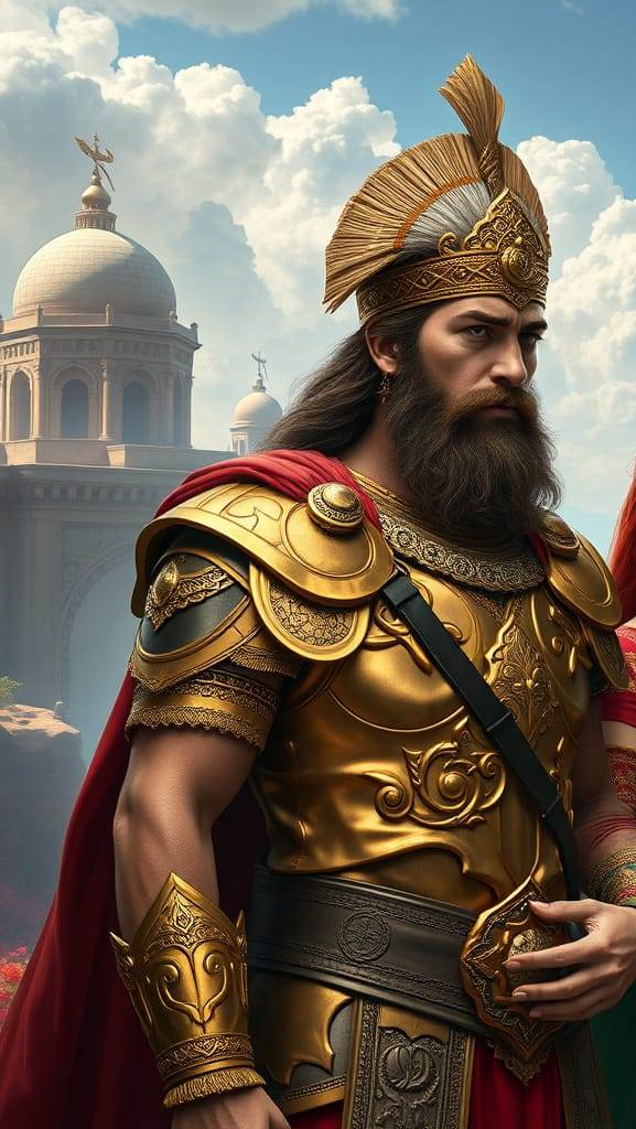 — “İşte oğlum… Artık senin zamanın. Tarih senin adını yazacak. Ama unutma, güçlü olmanın yanı sıra, merhamet ve akıl da gereklidir. Kyrous’un hatalarından ders al, adaletle hükmet ve kalbini kaybetme.”