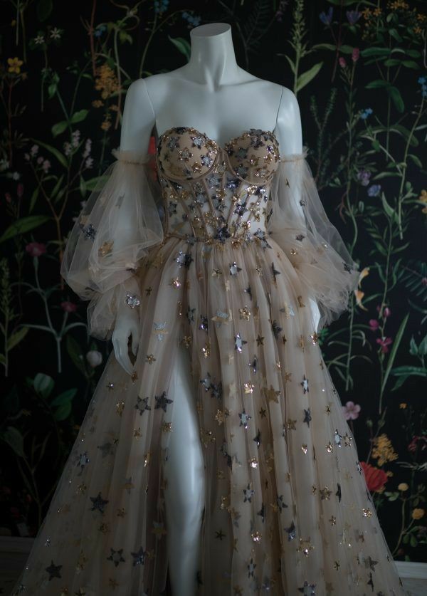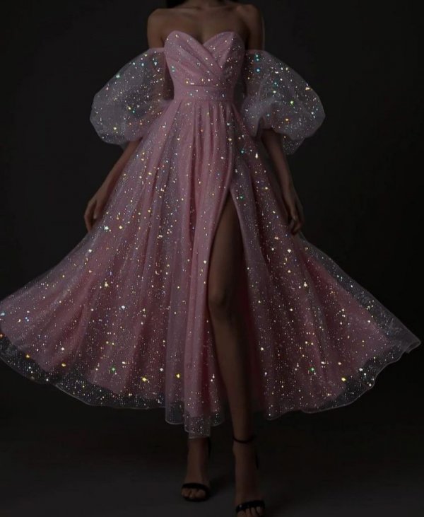 Ay prensesi adlı straplez göğüs dekolteli ve derin bir ayak yırtmacı olan çiçekli ve belli başlı rütbelere işlenen altın taşlı elbiseyi üzerime giyinip geri çekildim. Elbiseden ayrı balon olan kollarını giyinip, Kızlara döndüm. Elbisenin renginde işlemeleri daha düşük olan diz altı bele yapışan ayni kumaştan elbiseler de onlara gönderilmişti.