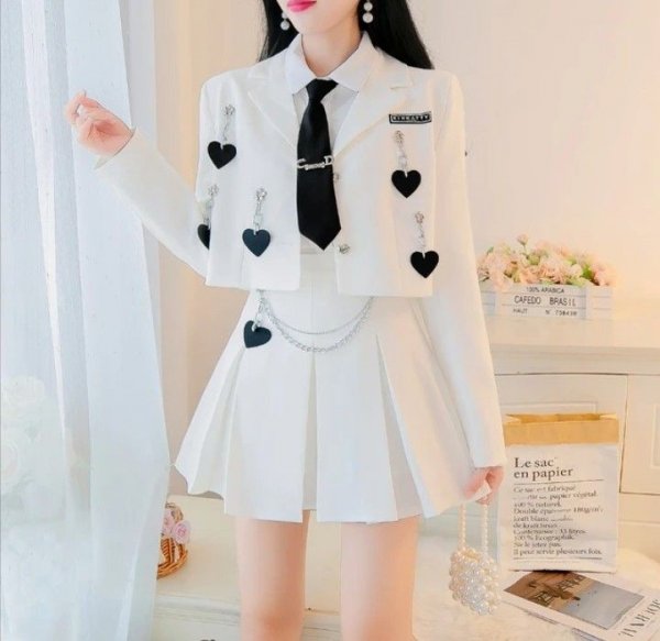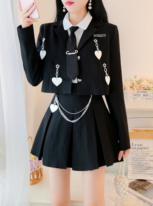 Siyah bir ceket ve üzerinde kalpli zincirleri mevcuttu, siyah düz mini eteği, eteğin üzerindeki zincir aksesuarı giderek uzuyor uzun her uzun zincirde bir yarasa dökümüne dönüşüyordu. Gömleğin kenarında asılı olan siyah etek kumaşından siyah kareli kravatı mevcuttu. Tatlı ve hoş duran bu okul kıyafeti Siyah ve beyaz tercihinden oluşuyordu ve Kore tarzı tatlılığı beni gülümsetmişti. Salonda sarmal şekilde dönen merdivenlerden yukarıya çıktığımda hoş bir şekilde dizayn edilmiş kocaman yuvarlak kırmızı yatağı görmek beni mutlu etmişti. Daire tasarımları oldukça iyiydi.